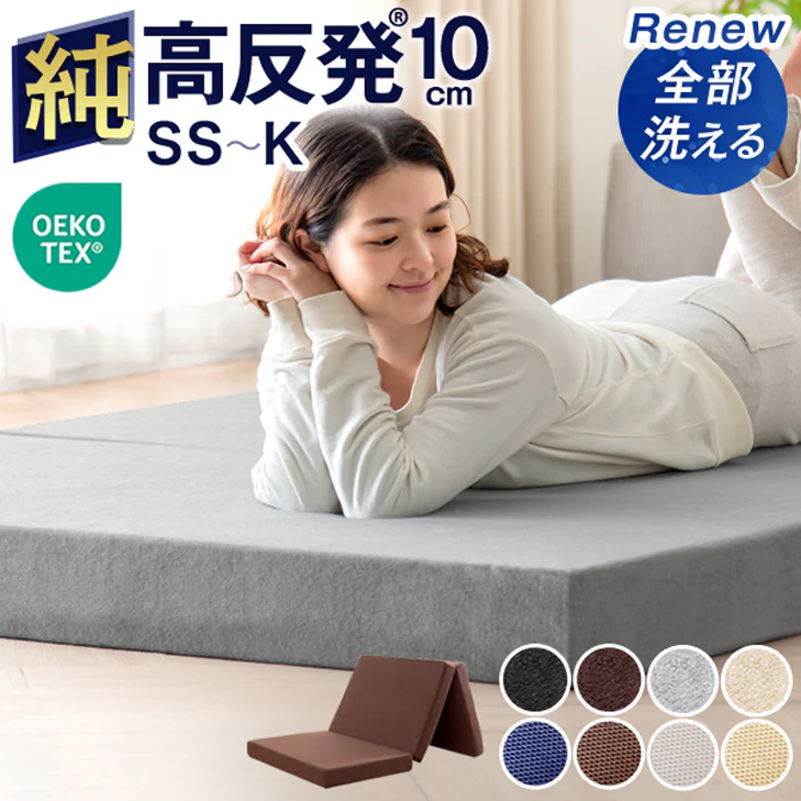 たとえば、折りたたみタイプは収納しやすく、来客用や省スペース向きです。しかし厚みは10cm前後がほとんどのため、寝心地重視の方には物足りなさを感じるかもしれません。