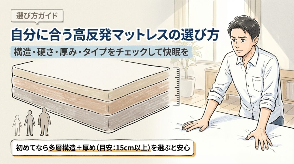 高反発マットレスと一口に言っても、構造・硬さ・厚み・タイプによって寝心地は大きく変わります。